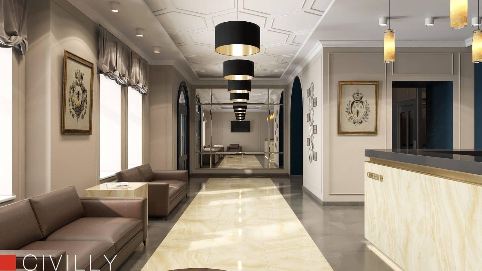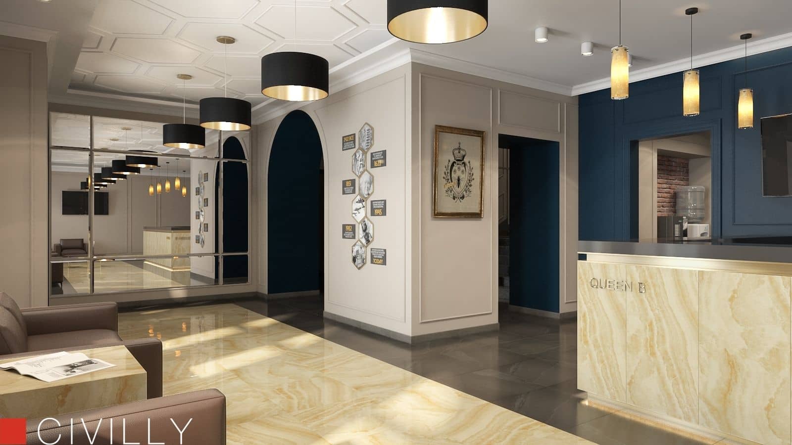 Ресепшн Гостиницы Queen Bee: Дизайн интерьера отеля в Киеве
