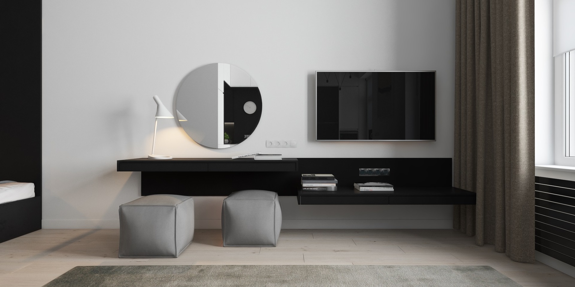 Это – так называемая «квартира выходного дня», а значит, хозяева будут останавливаться в ней, приезжая на отдых или отправляясь в командировки. Соответственно, в ней не должно быть ничего лишнего, однако она должна быть уютной, функциональной и максимально простой в уходе. Всего этого удалось добиться нашим дизайнерам при разработке интерьера.