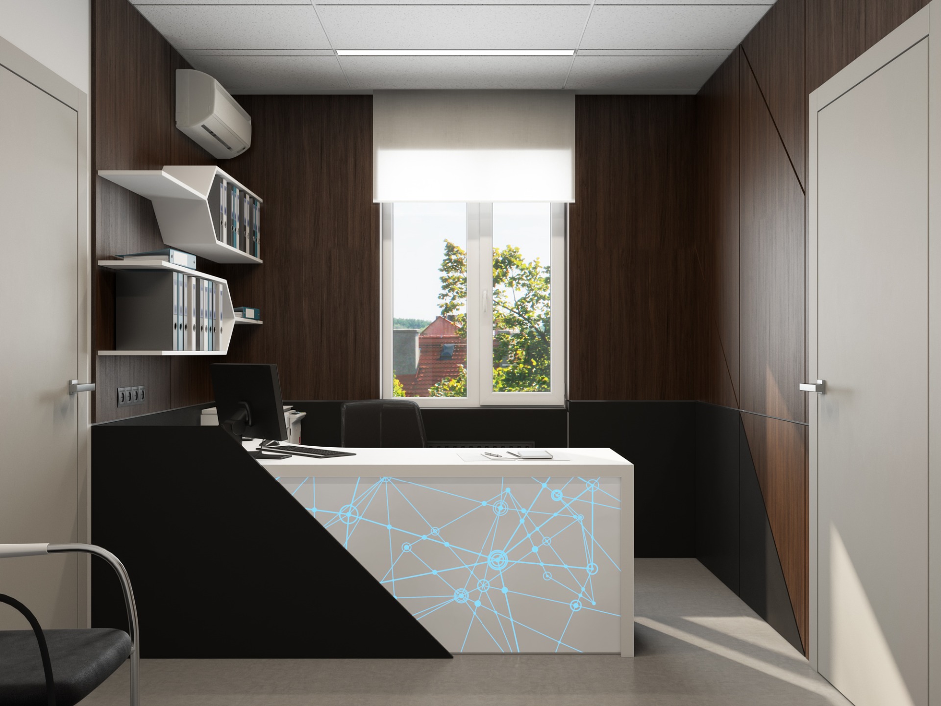 Заказчик данного дизайн-проекта директор IT компании в городе Умань является нашим постоянным клиентом. Дизайн офиса по его просьбе был выполнен в современном стиле с характерными чертами минимализма.