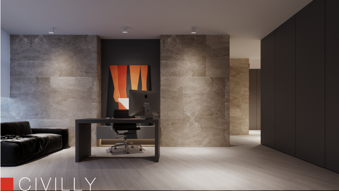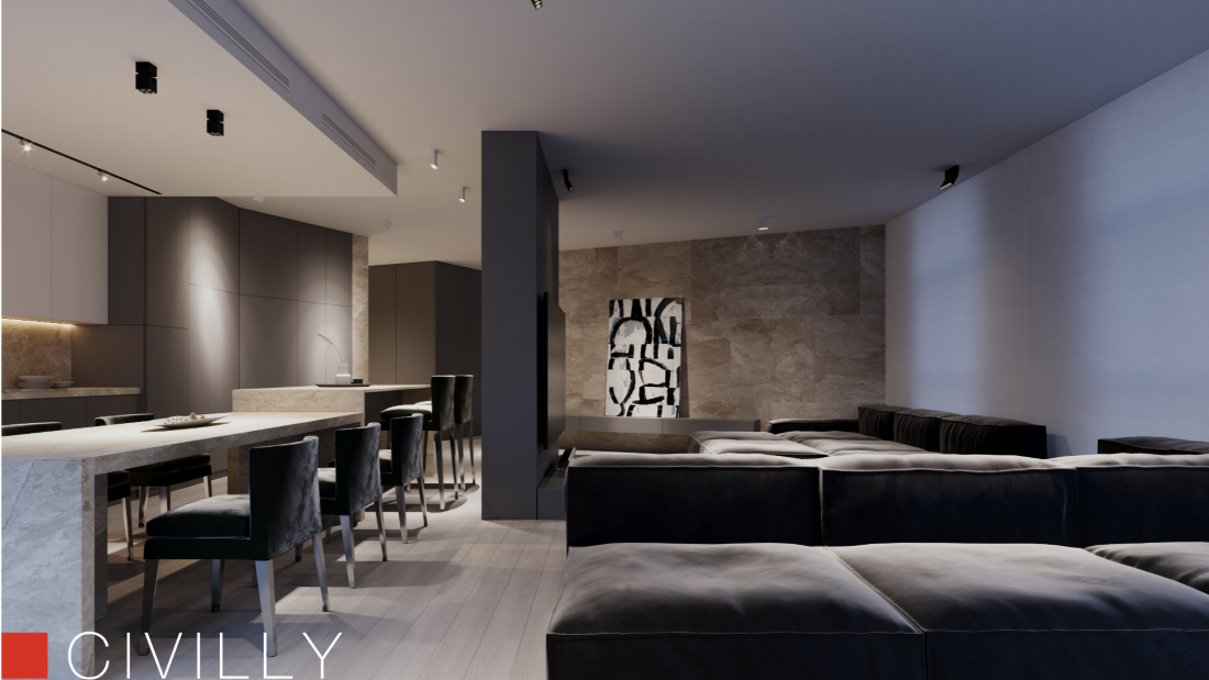 Пространство для приёма гостей: барная стойка и обеденный стол