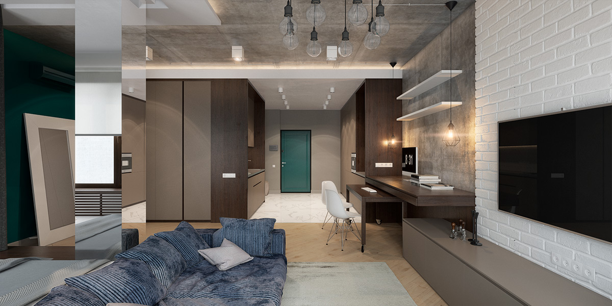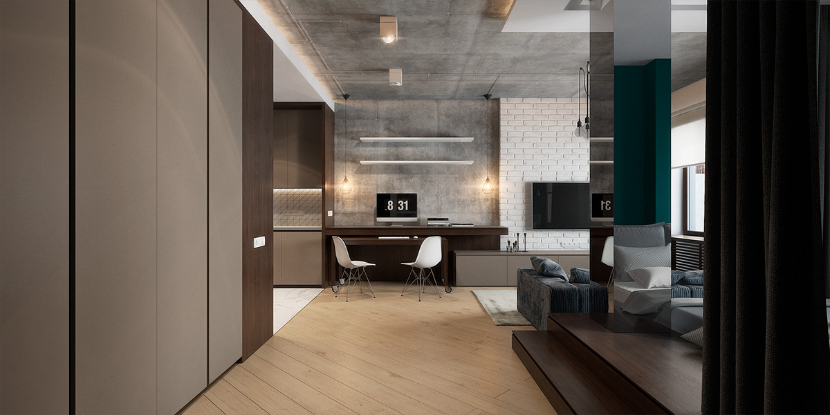 Бетонный потолок ⧿ эстетичный тренд, который не первый год используется ведущими специалистами мира индустрии дизайна. Выбранный стиль "Лофт" сейчас в тренде, его предпочитают молодые люди, при этом владелец апартаментов сэкономил значительные суммы на ремонте.