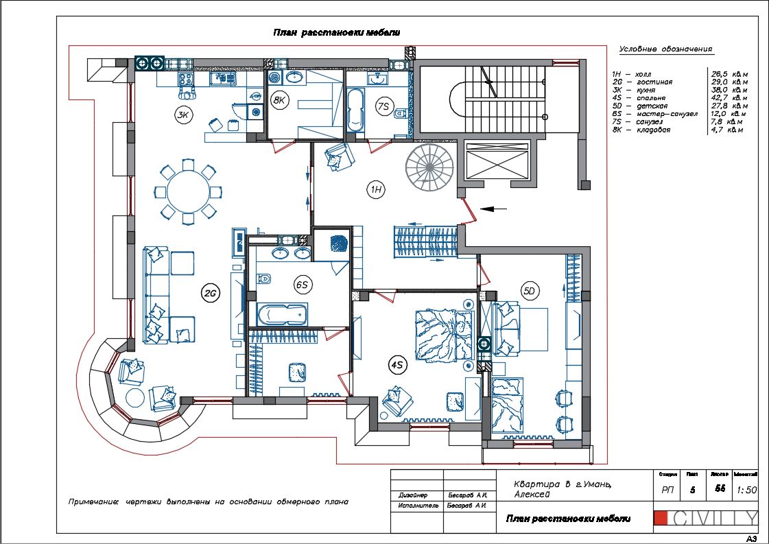 Площадь этой квартиры-пентхауса велика, поэтому планировочные решения получились очень достойными. Однако,заказчика очень волновал бюджет реализации дизайн-проекта — стоимость отделочных работ и материалов (как многие говорят «цена ремонта квартиры»). Именно поэтому концептуальной основой этого интерьера был принят стиль «Лофт», который позволяет с минимальным бюджетом и в минимальный срок реализовать строительно-отделочные работы.