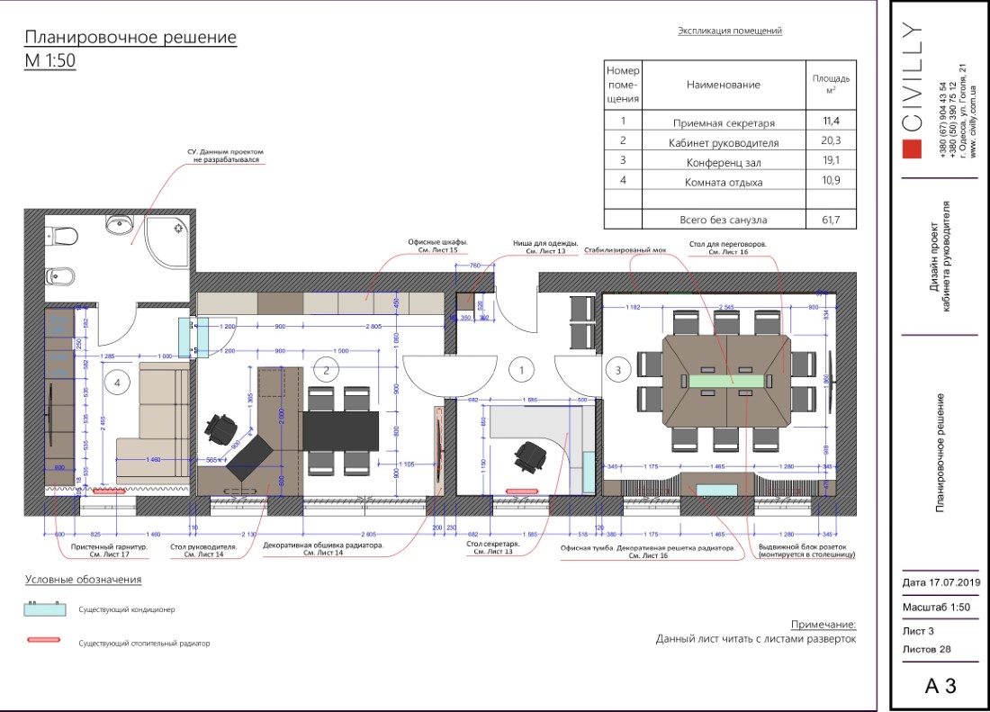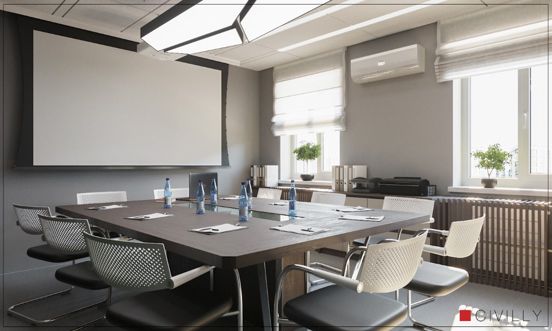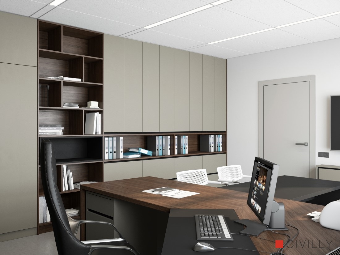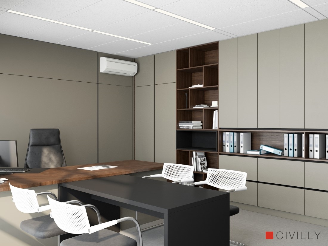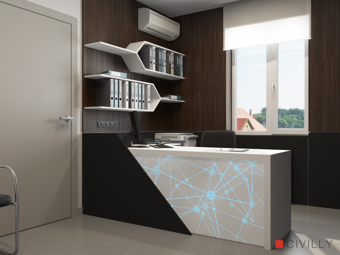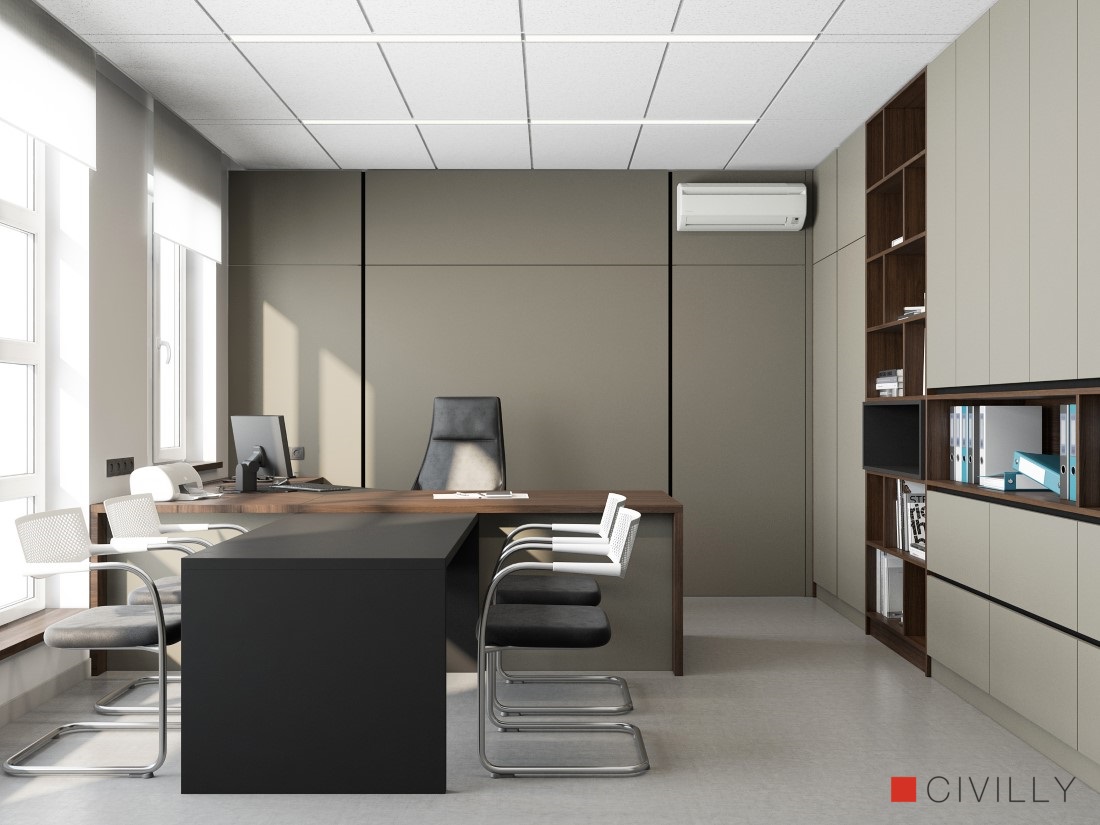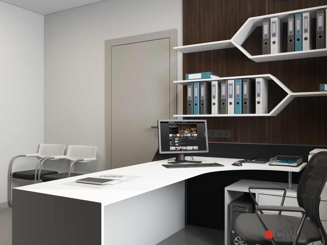 В оформлении дизайна-проекта архитекторы компании Civilly использовали четкие формы, простую геометрию, мягкое рассеянное освещение. В связи с тем, что помещения небольшие, особое внимание при разработке дизайн-проекте офиса пришлось уделить эргономике. Дизайнерам была поставлена задача вместить многие необходимые предметы в очень компактное пространство. Архитекторы нашей компании постарались сделать дизайн офиса простым и комфортным для работы. Офис состоит из группы помещений: приемная, рабочий кабинет руководителя, конференц-зал и комната отдыха.