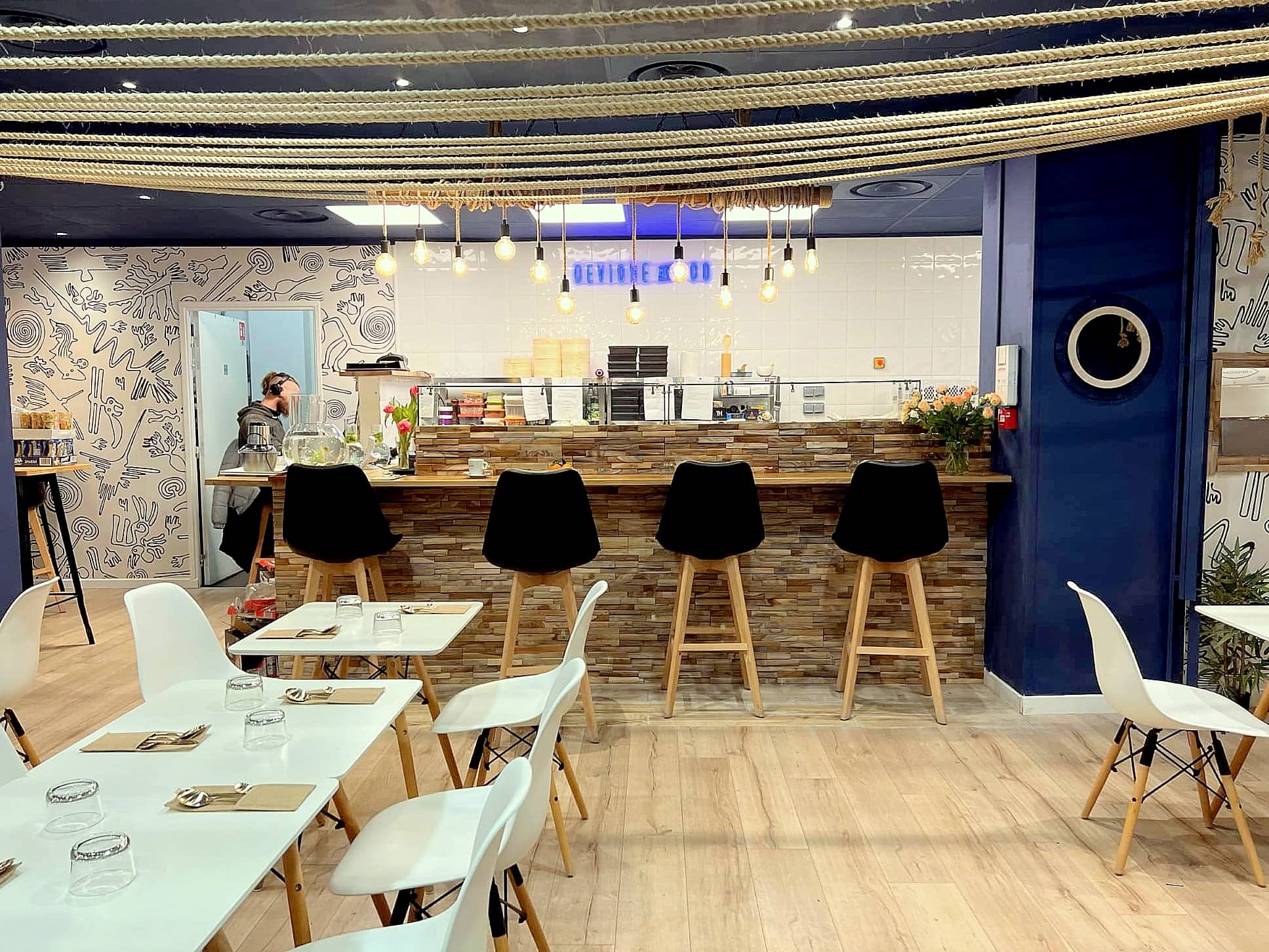 Ресторан площадью 60 м² расположен в деловом квартале Ниццы, всего в десяти минутах от аэропорта. Такой выбор локации делает особенно важным учет потока посетителей в обеденные и вечерние часы. При проектировании ресторана мы анализируем поведение целевой аудитории, чтобы дизайн кафе или бистро был не только стильным, но и практичным.