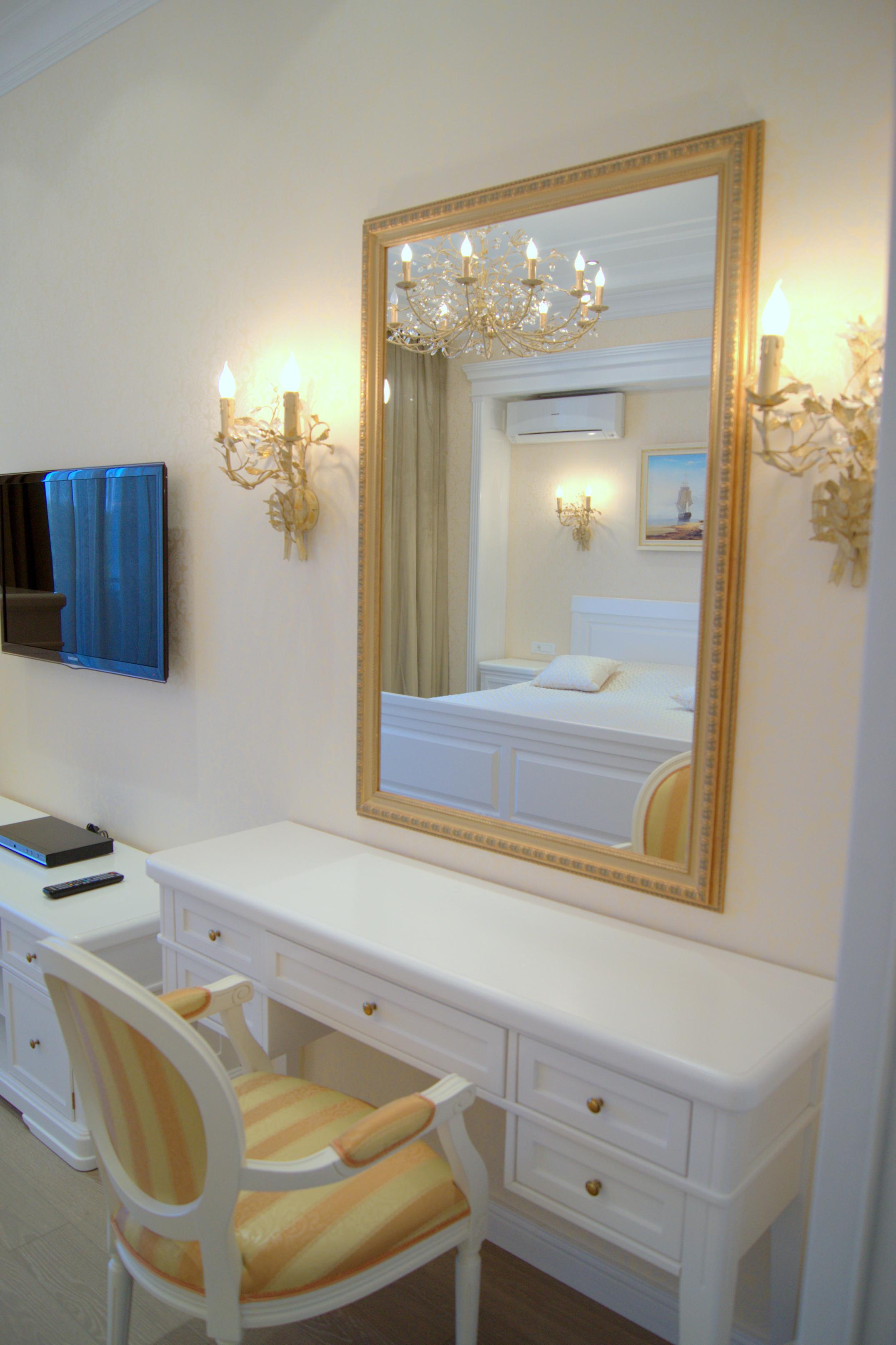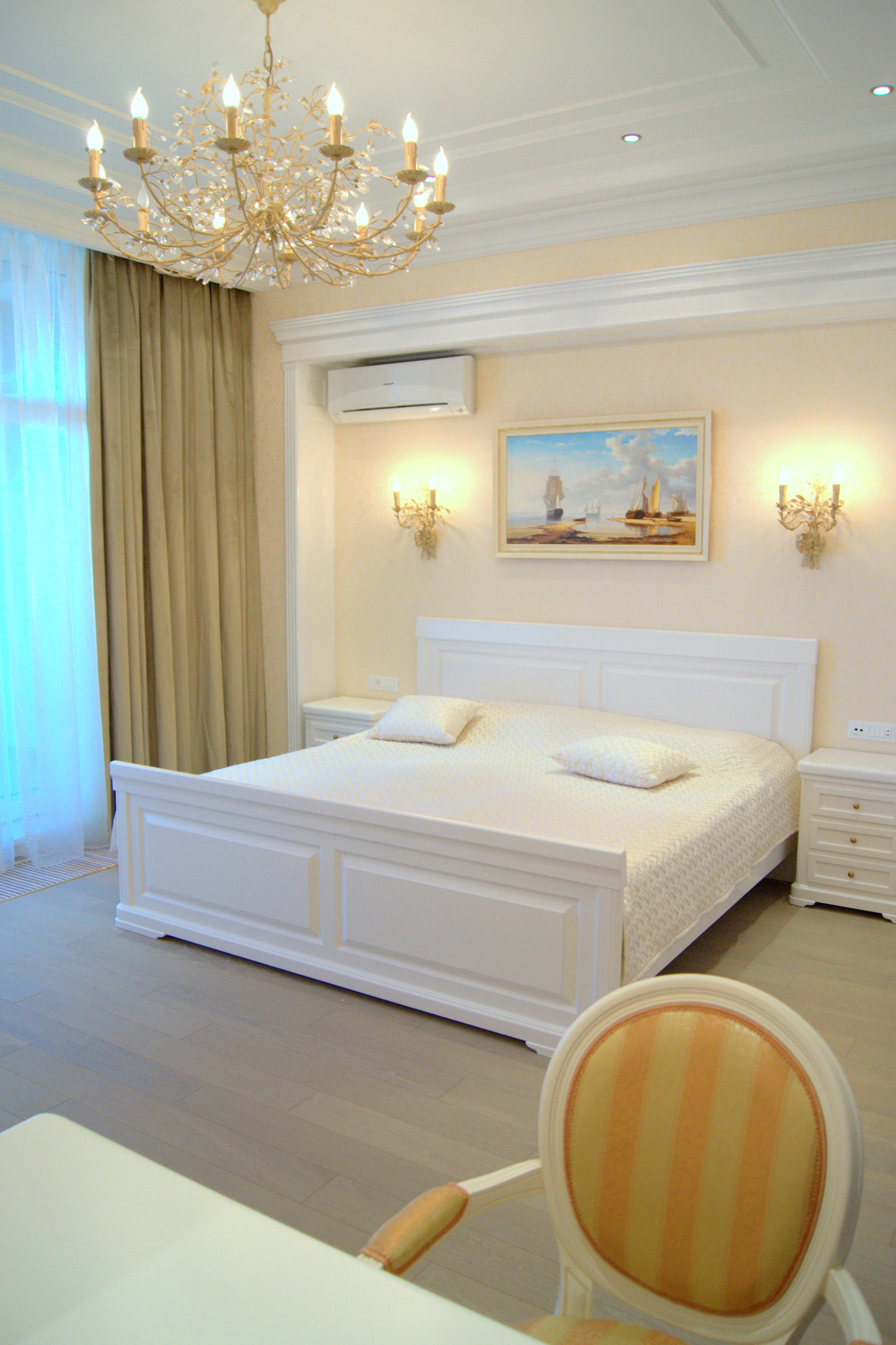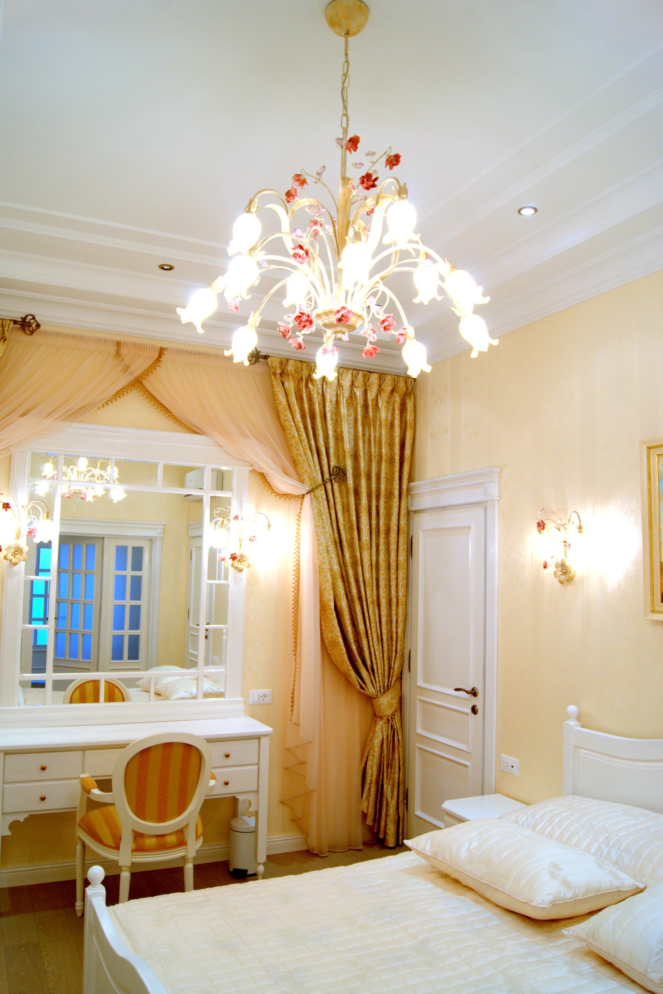 Свет: многоуровневые сценарии — потолочные центровые светильники/люстры, бра, линейная подсветка карнизов и витрин, локальная подсветка рабочих поверхностей. Электрика разведена по группам; предусмотрены скрытые ревизии.