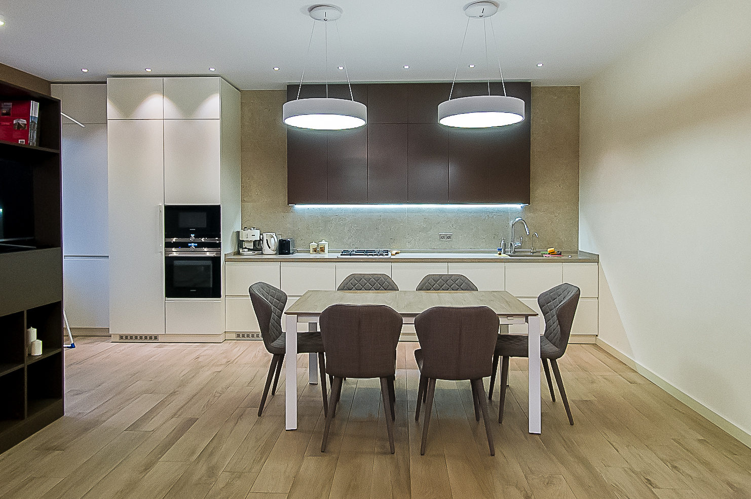 Еще один реализованный нашей компанией проект по созданию мебели для интерьера, разработанного мастерами дизайна S&T architects (http://snt-a.com). Мебель в современном стиле выполнена из комбинации ДСП, шпонированного и окрашенного МДФ, что позволило добиться премиального внешнего вида и приемлемого бюджета. Этот проект — очередное доказательство того, что мебель является неотъемлемой частью интерьера, и лучших результатов можно добиться, заказывая ее только у профессионалов.