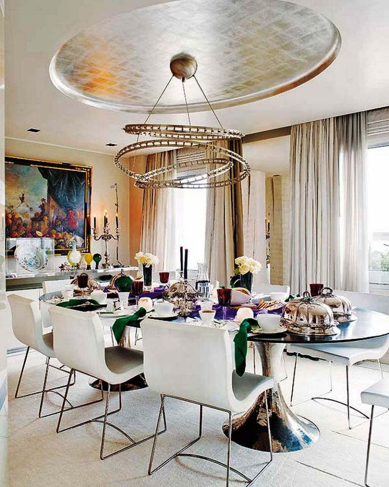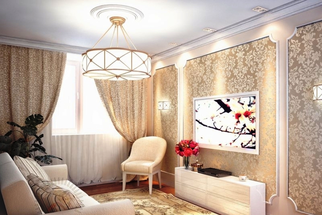 Если Вы — владелец вместительной гостиной, следует присмотреться к подвесной люстре в стиле, соответствующем комнате. Если Вы обладаете, напротив, скромной площадью гостиной, советуем обратить внимание на люстры- тарелки и потолочные люстры.Ориентируясь на преобладание в интерьере спокойных, приглушённых тонов, выбираем люстру белого цвета, шампань или металлик.