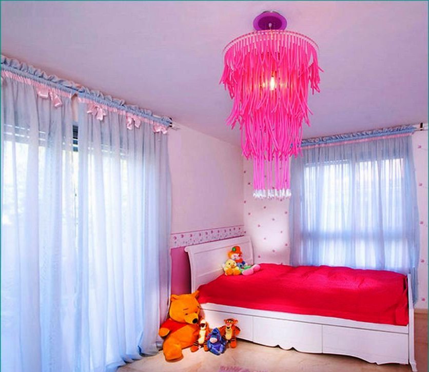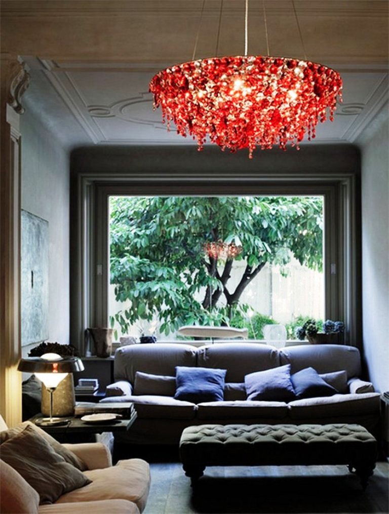 Красный и розовый. Если у вашей комнаты стиль барокко или гламур, то красная люстра – это сам дух таких интерьеров. Очень «вкусно» они смотрятся и в кухне, пробуждают аппетит и настраивают на прием пищи. Розовая люстра будет актуальна в комнате маленькой принцессы.