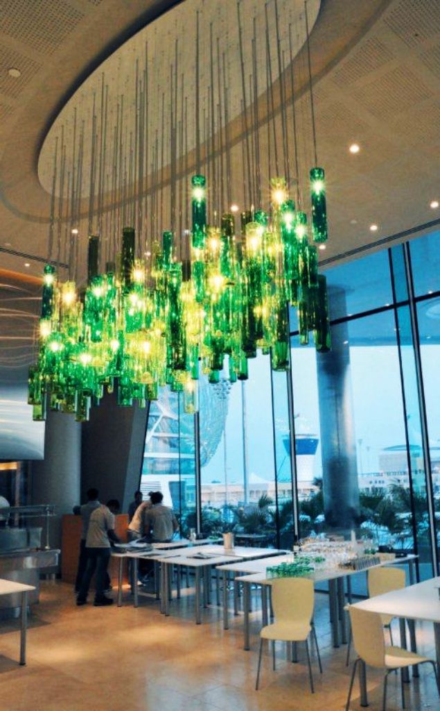 Благородный зелёный цвет может как тонизировать, так расслабить. В стиле модерн отлично будет смотреться простая зелёная люстра, которая выступит ярким пятном. Люстра же с подвесками в классическом стиле успешно впишется в гостиные с дизайном барокко, арт-деко, авангард и, конечно, классика.