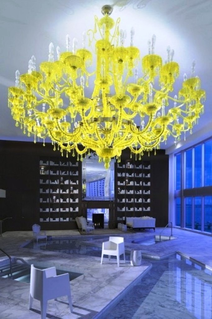 Жёлтый. Хотите, чтобы Ваша люстра действительно выделялась? Выбирайте самый сочный оттенок жёлтого, так как приглушённые оттенки жёлтого будут не выразительны.