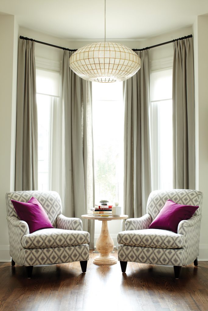Не стоит пренебрежительно относиться к выбору текстиля для интерьера, ведь именно с его помощью можно легко видоизменять интерьер, привнести в него яркие цветовые акценты или интересные орнаменты. Если же мы говорим о классических портьерах, то при их выборе следует придерживаться простого правила: их ширина должна быть в 2,5-3 раза больше ширины окна, что позволяет создавать мягкие складки и красиво драпировать ткань. Диванные подушки прекрасно освежают интерьер, однако предпочтение лучше отдать нескольким крупным подушкам, подходящим под шторы.