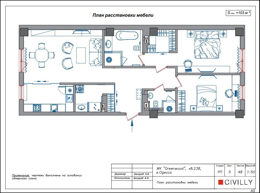 Розробка цього дизайн-проєкту зайняла понад 3 місяці. Господарі квартири залишилися повністю задоволені своїм дизайном інтер'єру в класичному американському стилі. На момент здачі будинку в експлуатацію дизайн-проєкт був повністю готовий та затверджений, складено кошторис, графік виконання робіт та фінансування. Це дало можливість не втрачати дорогоцінний час, швидко почати та успішно завершити ремонт у новій квартирі.