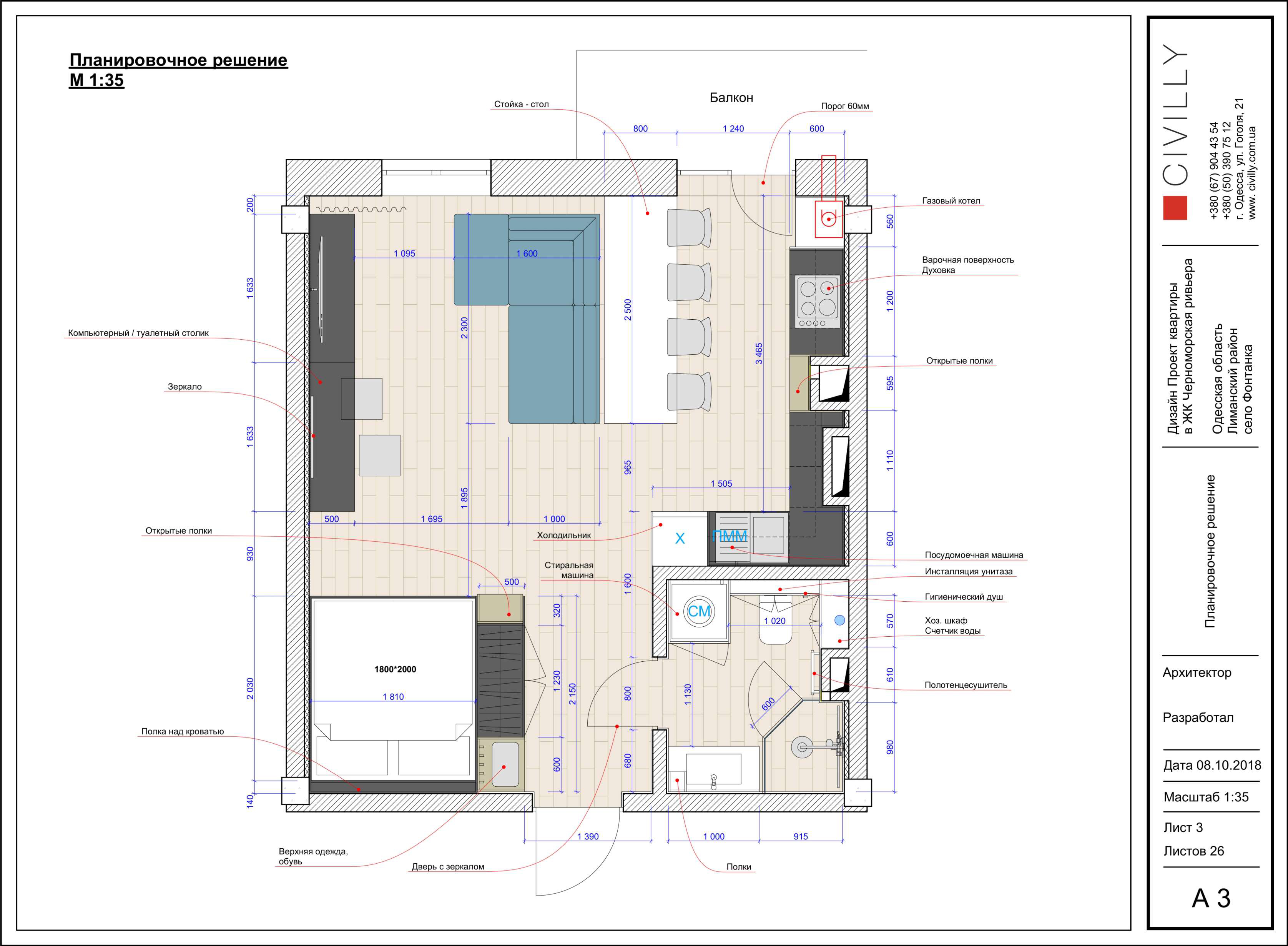 1. Обмерочный чертеж + планировочные решения (3-5 вариантов) + план полов, кондиционеров, сантехники. Цена: 7 у.е./м.кв.